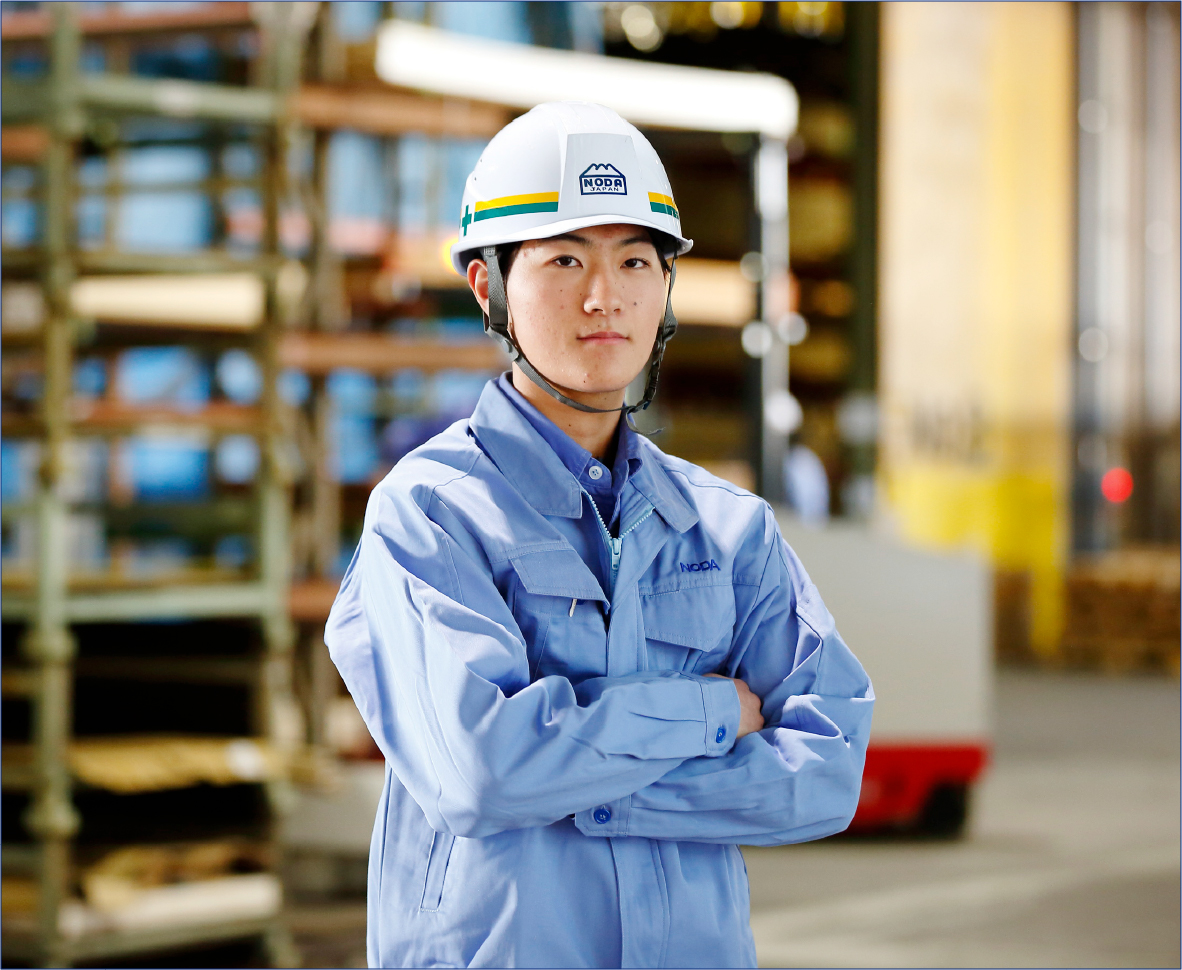 - 製造で働く向笠さんとは、高校の先輩・後輩の間柄。同じ野球部に所属し、在学中も交流があった。そのため、就活時にノダを検討する際にも「向笠さんが入社した会社だ」という安心感があったという。また、自身も昔から建材に関わる仕事に興味があり、向笠さんを通じて社風や人間関係の良さを知り、ノダへの入社を決めた。