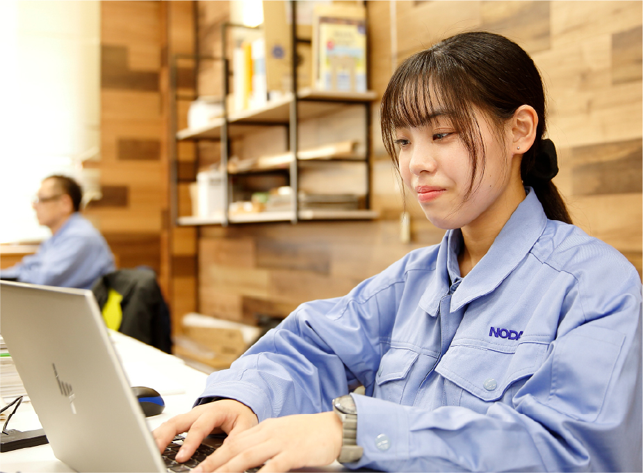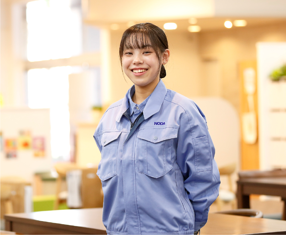 現在は製品開発部に所属し、先輩社員の補助業務を中心に、新製品の試作や検証に携わっています。例えば、最近行った仕事の一つが「床材の耐久性の検証」です。水や薬品、洗剤などが床材に落ちたとき、どんな変化が起きるのか。膨れたり突き上がったりしないか、もし変化が起きるとしたらどの程度の量や時間で発生するのか、といった試験をおこない、製品の性能を測ります。また、製品仕様書の作成にも携わっています。当社の製品には、一つずつ製品仕様書が付属するのですが、その作成や関連する図面の作成および修正をおこなっています。