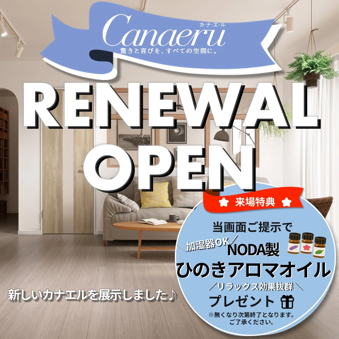 ご来場時にこの画面をご提示いただいた方限定で、この冬の乾燥対策にもぴったりな「NODA製ひのきアロマオイル」をプレゼント。やさしいひのきの香りが広がり、リラックス効果も抜群です!
