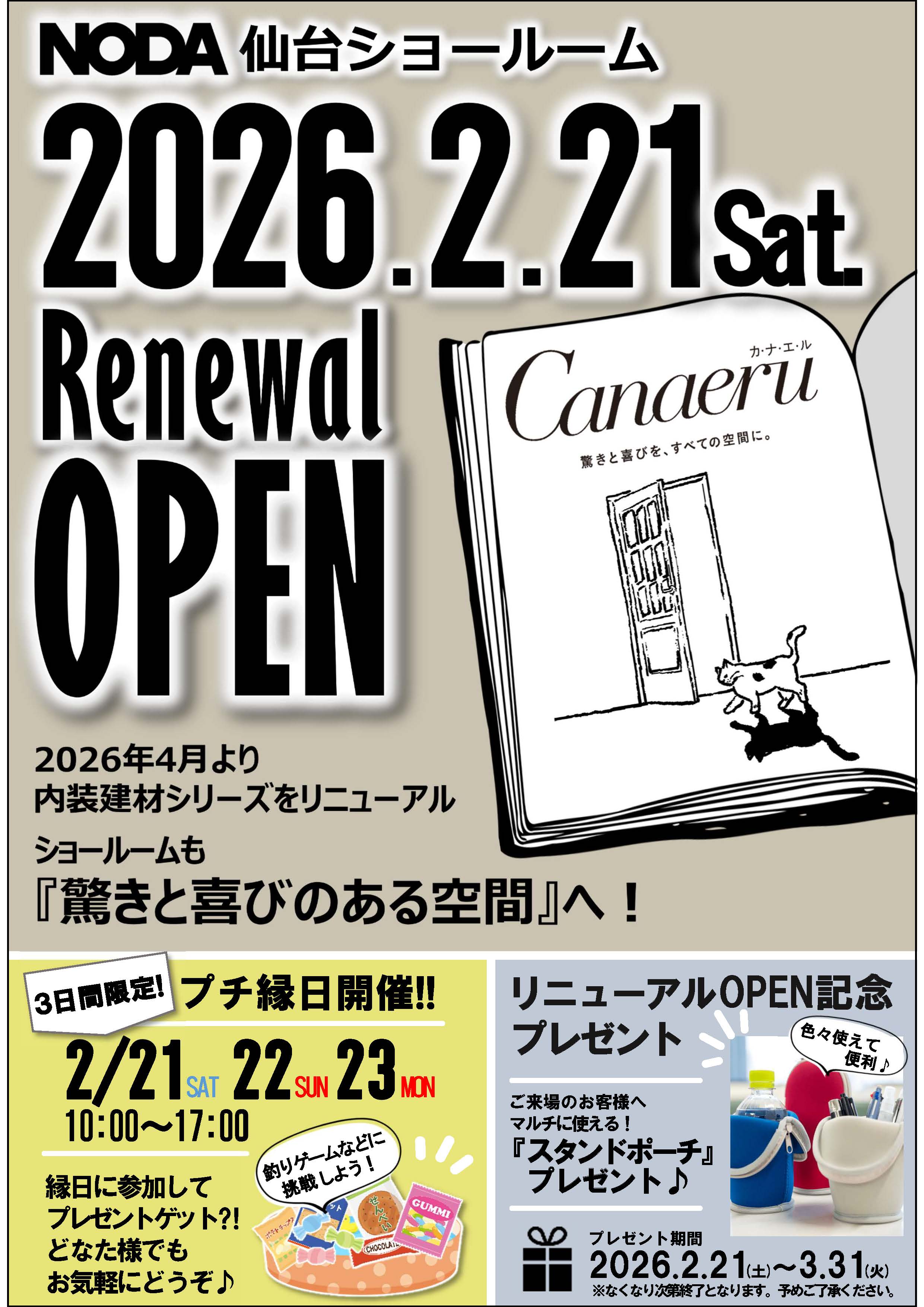 リニューアルオープンイベント:2月21日(土)・22日(日)・23日(月)