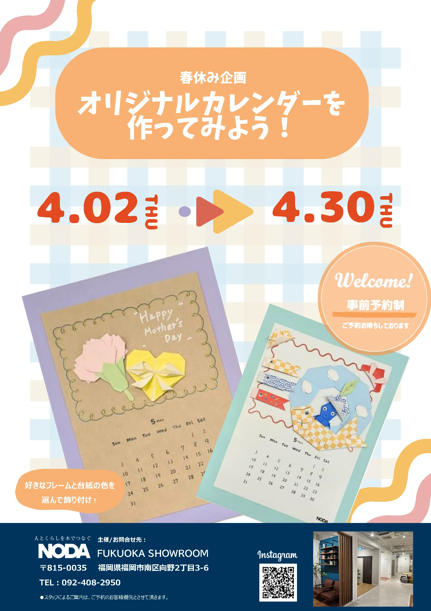 【福岡】ショールーム 「 オリジナルカレンダーを作ってみよう!」 期間:4/2(木)~ 4/30(木)